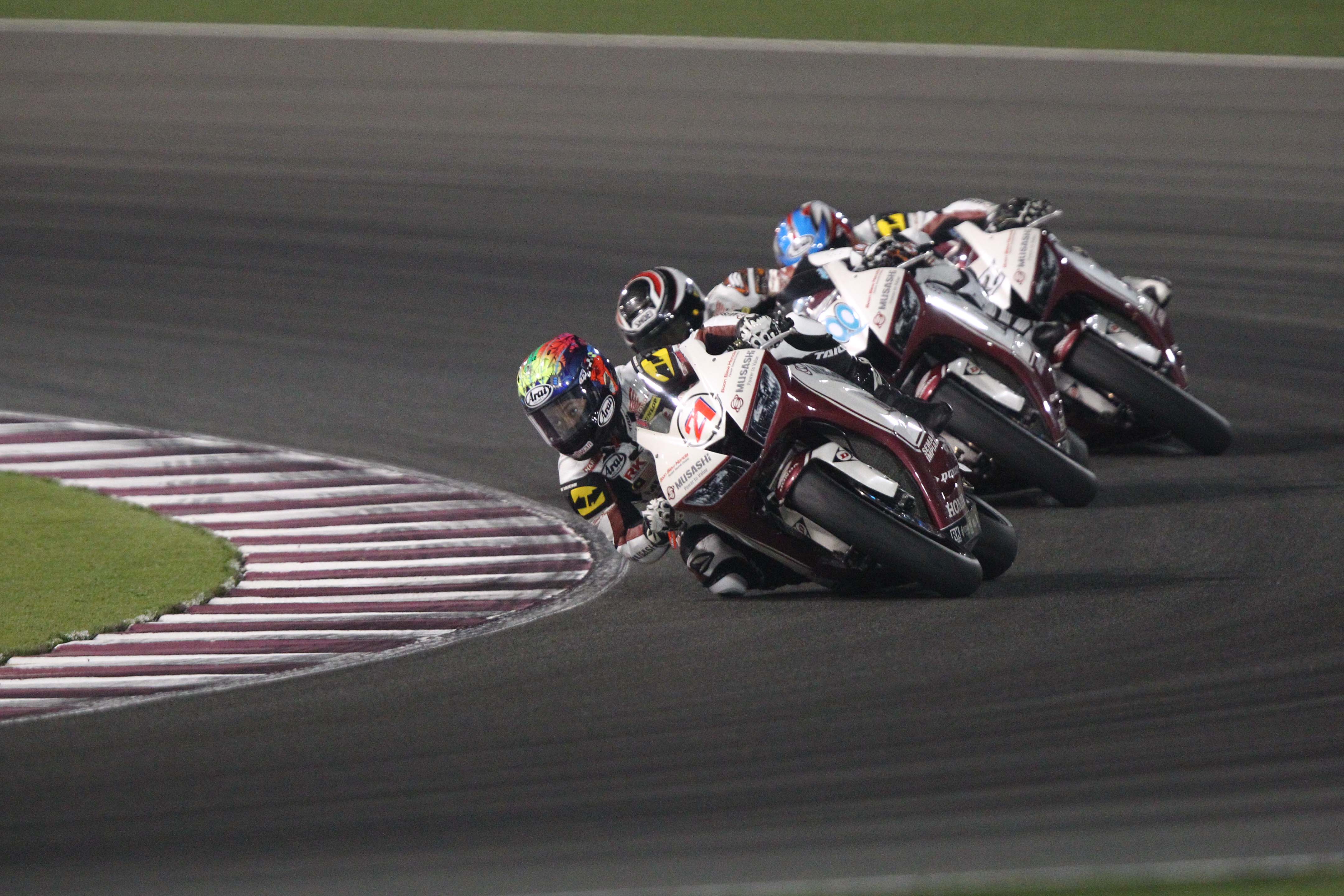 Zaqhwan Zaidi snatched the SuperSports 600cc crown from the grasp of Katsuaki Fujiwara and Yuki Ito to become the youngest rider to win the premiere class in a thrilling PETRONAS Asia Road Racing Championship season finale at the Losail International Circuit in Qatar on Sunday.The Musashi Boon Siew Honda Racing rider was third in the standings with a 22-point disadvantage heading into the final round but was able to secure the title having finished second in Race 1 and Race 2 as champion thanks to teammate, Zamri Baba who held off his immediate title rivals.Retiring Katsuaki Fujiwara (BEET Kawasaki Racing) who initially led the standings missed out on what could have been his second Asian title after he completed both races outside top-10 following technical difficulties with his front-end suspension.It was a dramatic end to an enthralling season and gave Honda, who sealed the SuperSports 600cc team awards with Zaqhwan’s victory at the floodlit desert circuit, their third riders’ title after Ryuichi Kiyonari (2012) and Azlan Shah Kamaruzaman (2013).